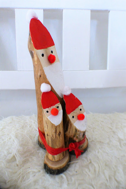 Nie jeden raz prezentowałam na moim blogu uzdolnienia mojego męża. I chyba jeszcze wiele razy o nim napiszę. Chciałabym dziś pokazać Wam Mikołaje zrobione z drewna, z gałęzi, czasem korowanych czasem bez korowania. Dobra piła, klej, trochę czerwonej i czarnej farby, kawałek czerwonej tkaniny, pomponiki. Wyobraźnia przestrzenna też jest ważna.